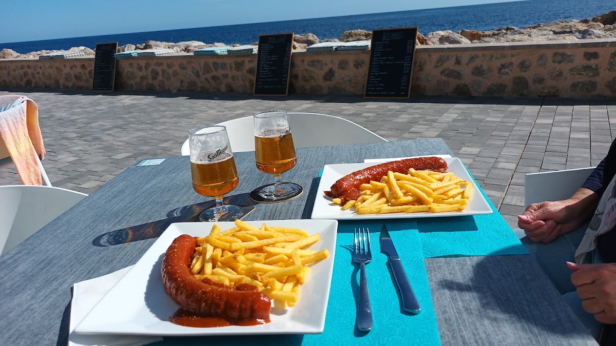 The menu at Norai Cala Rajada Restaurant-Cafeteria offers something for everyone, making it an ideal stop for both locals and tourists alike. One of the standout dishes is the Currywurst mit Pommes Frites - a mouthwatering, savory sausage paired with crispy fries, perfect for a hearty lunch or dinner. If you're in the mood for seafood, their Almejas (clams) are a must-try, offering a fresh and flavorful bite that's sure to impress. To wash it all down, there's no better choice than a refreshing Cerveza or a classic Sangria Und Weißwein, which perfectly complement the vibrant flavors of the dishes.